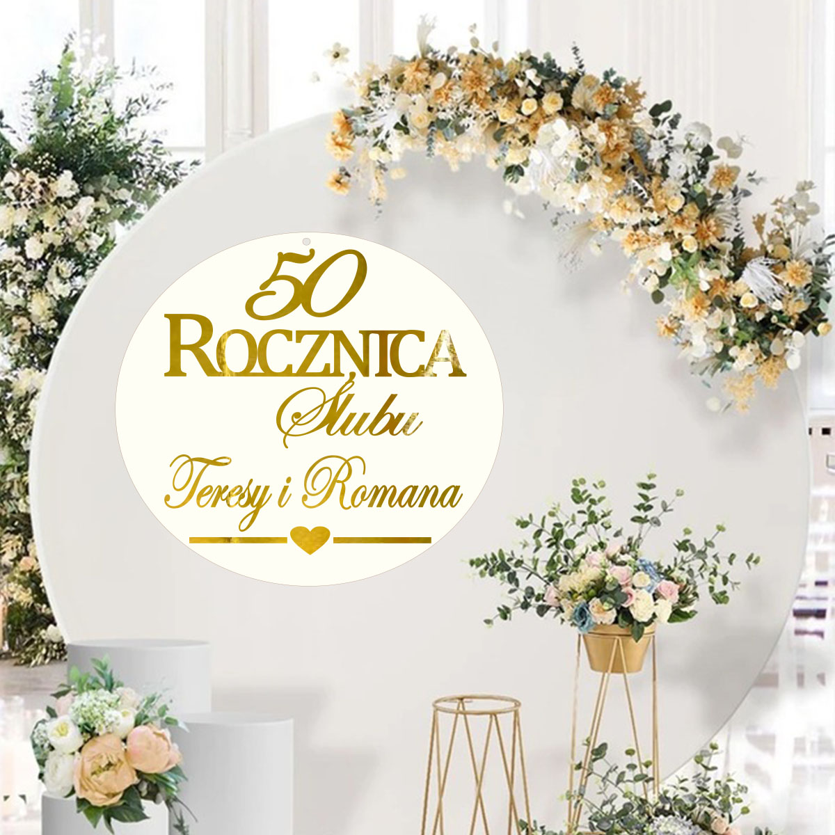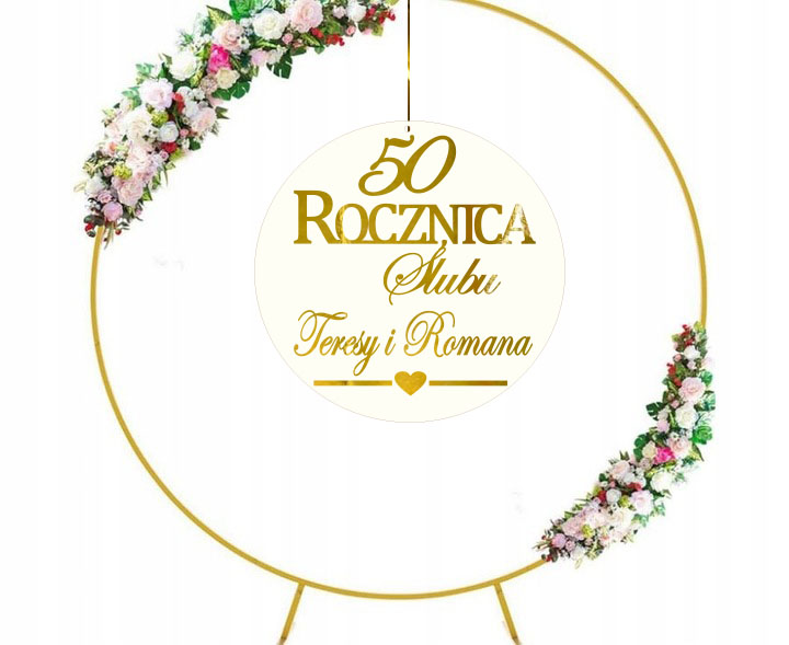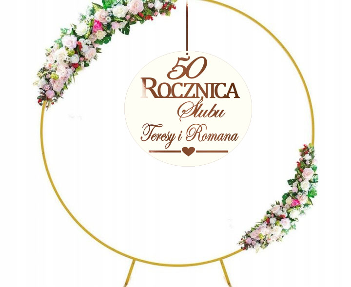 Baner na (dowolną 10, 20, 25, 50...) Rocznicę Ślubu to wyjątkowa personalizowana dekoracja, która podkreśli wagę tego wyjątkowego dnia. Obręcz wykonana z największą starannością doda elegancji i uroku każdej dekoracji. Cechuje ją uniwersalność, dzięki czemu pasuje do różnych stylów i aranżacji. Baner można wykorzystać w domu lub sali, na której odbywa się przyjęcie. Doskonale sprawdzą się też jako zawieszki na ściankę, tło lub jako tablica przed salą. Istnieje możliwość dodania własnego tekstu max 3-4 słowa.
