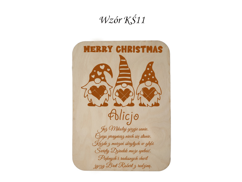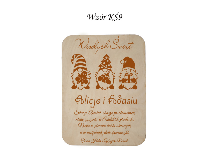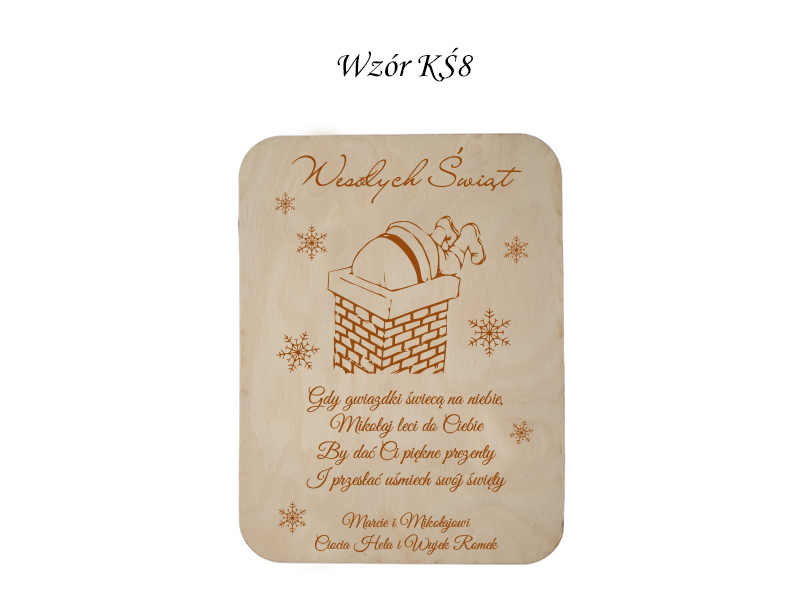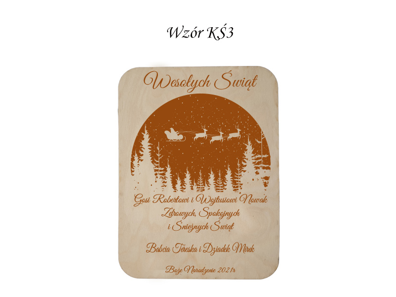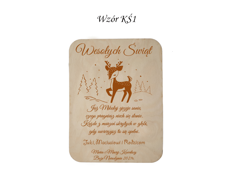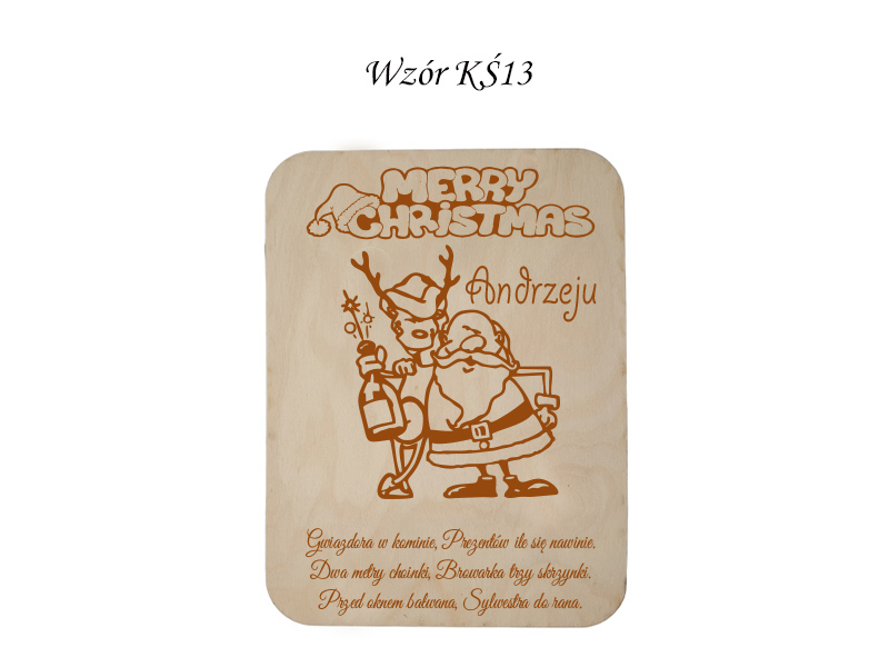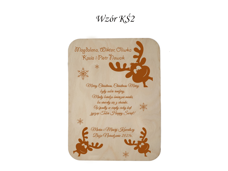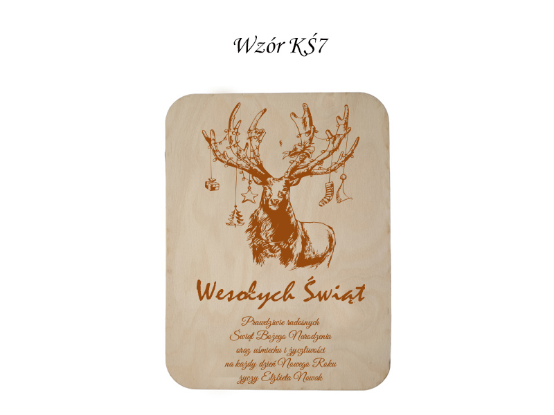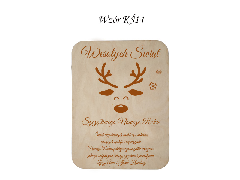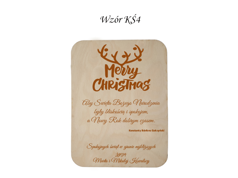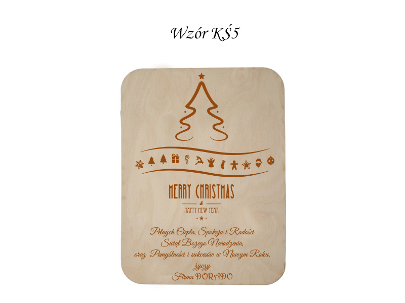 Drewniana kartka świąteczna, EKO życzenia na Boże Narodzenie z grawerem, Imieniem lub Logiem firmowym. Ten upominek z pewnością wywoła uśmiech na twarzy każdego obdarowywanego i będzie trwałą pamiątką budzącą miłe wspomnienia. Prosta drewniana forma została wzbogacona o personalizowany grawer z życzeniami, danymi lub logiem firmowym. W naszej ofercie posiadamy kilka wzorów do wyboru.