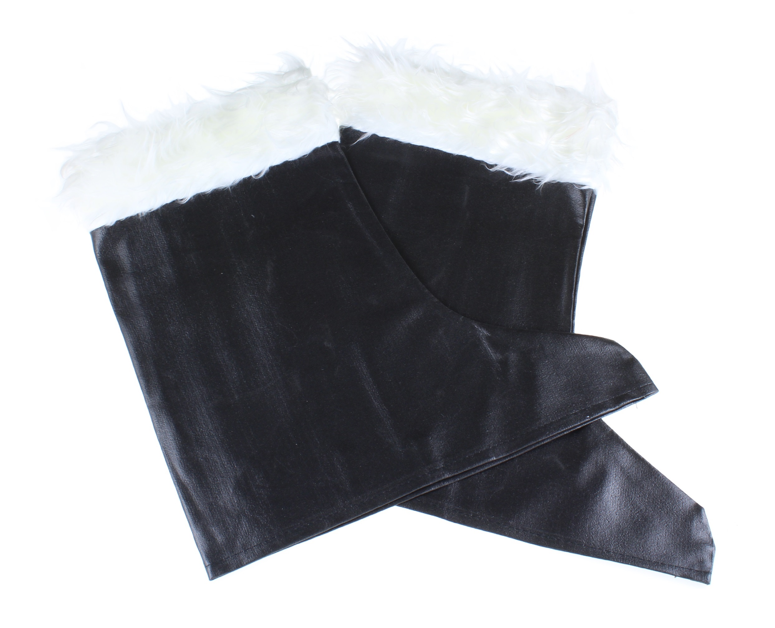 Nakładki na buty z białym puszkiem, nieodzowny element stroju każdego Mikołaja. Nakładki wykonane z materiału imitującego skórę, obszyte białym kożuszkiem.