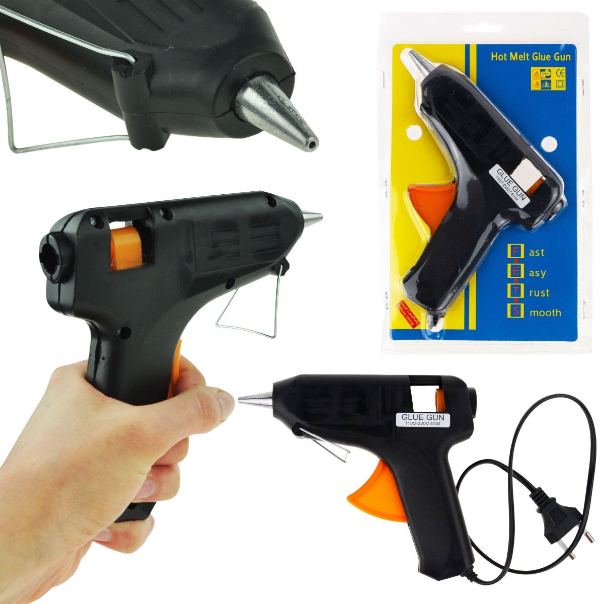 Pistolet do kleju na gorąco jest niezastąpionym urządzeniem do pracy w domu, garażu, warsztacie. Polecany zarówno do drobnych napraw, jak i do tworzenia przedmiotów dekoracyjnych. W bardzo łatwy, szybki i precyzyjny sposób umożliwia łączenie elementów bez potrzeby oczekiwania na zaschnięcie kleju. Idealny do klejenia elementów wykonanych z różnych materiałów. Lekki i łatwy w obsłudze. Ergonomiczny kształt sprawia, że pistoletem wygodnie się pracuje.