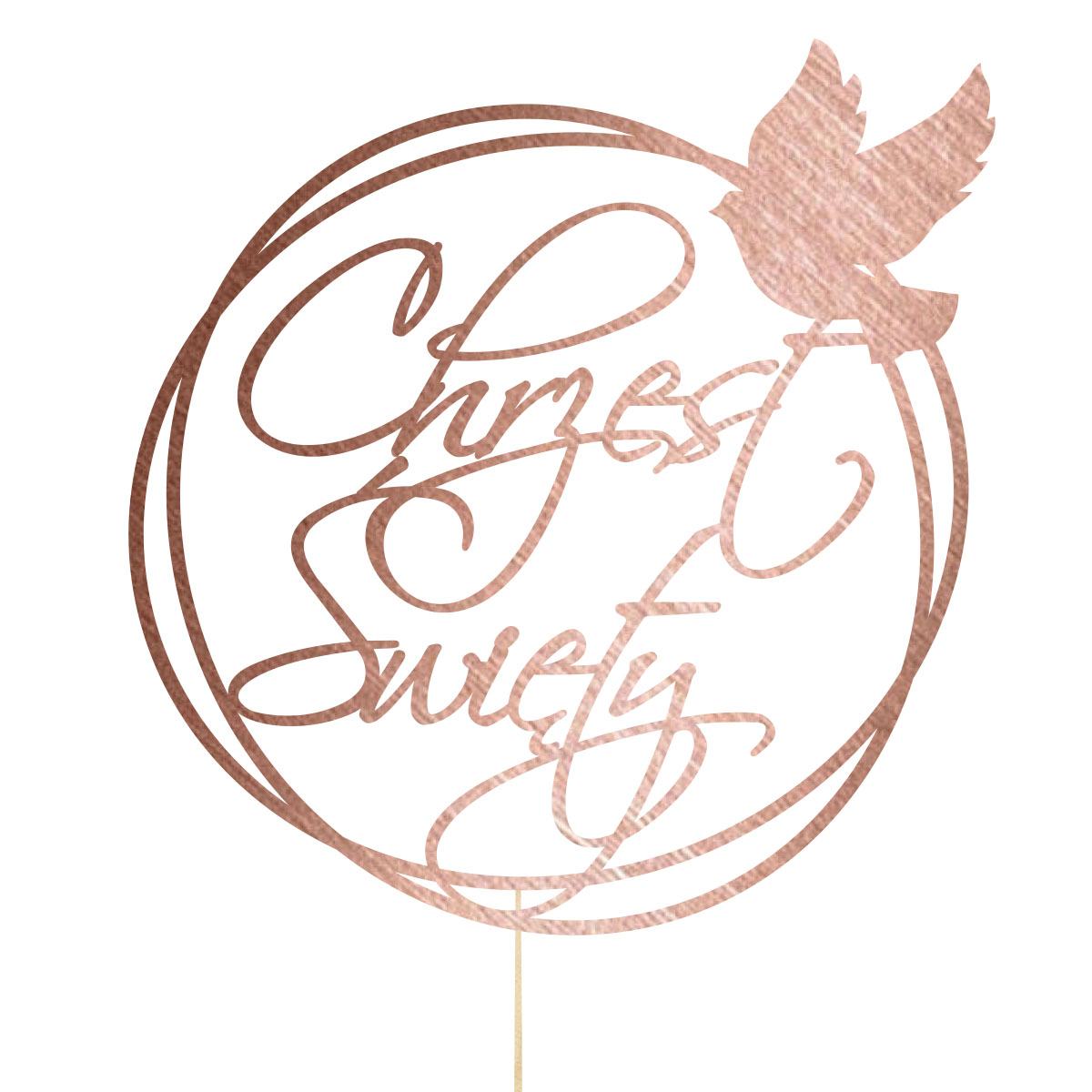 Topper - dekoracja na bok tortu, pik, napis, ozdoba na Chrzest Święty. Gustowny dodatek, podkreśli wyjątkowy charakter uroczystości i będzie doskonałym akcentem na torcie lub bukiecie. Emblemat można także wykorzystać do dekoracji innych elementów tj. kartek, zaproszeń czy podziękowań dla gości. Można go użyć jako pik do wbijania lub ozdobę do przyklejania. W zestawie znajduje się wycięty element, drewniany patyczek oraz kropki klejowe umożliwiające dopasowanie ozdoby do oczekiwanej wysokości lub przytwierdzeniu jej do wybranej powierzchni. Dekoracja nie jest klejona dzięki czemu to Ty zdecydujesz w jaki sposób ją wykorzystasz. Aby nałożyć topper bezpośrednio na tort użyj folii spożywczej.