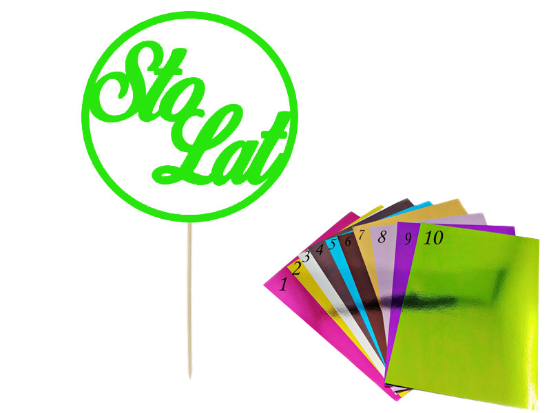 Topper na urodziny z napisem sto lat umieszczonym w obręczy wycięty na papierze lustrzanym. Produkt starannie wykonany, cięty laserowo podkreśli wyjątkowy charakter uroczystości i będzie doskonałym akcentem na torcie lub w bukiecie. Topper wykonujemy na indywidualne zamówienie klienta.