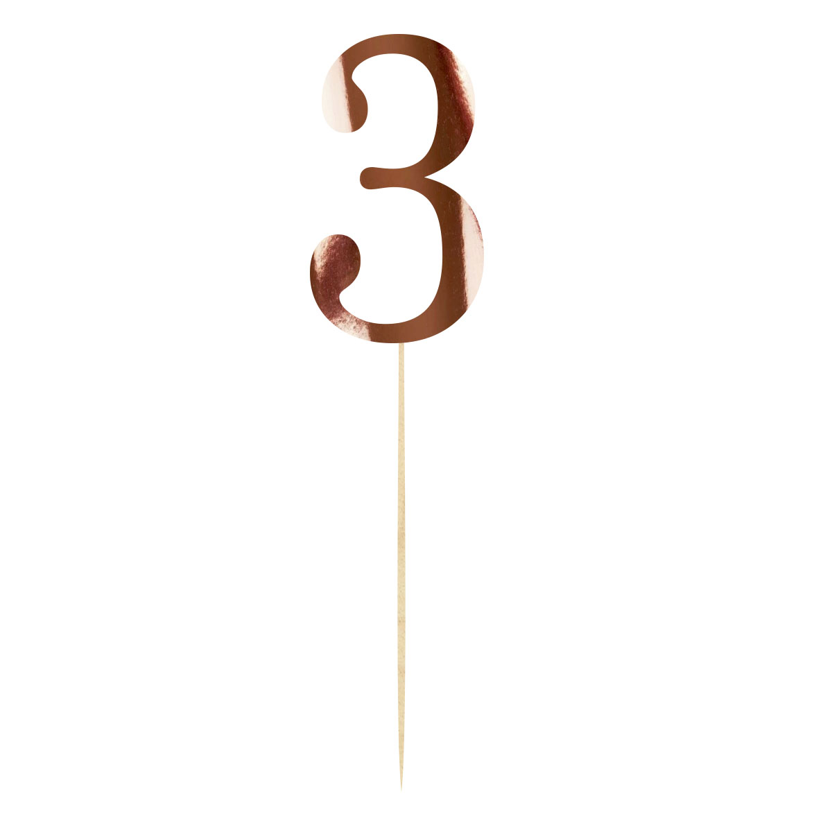 Topper cyfra na piku 3 dedykowany na urodziny, jubileusze, party. Dekoracja wykonana z lustrzanego różowego złota podkreśli wyjątkowy charakter uroczystości i będzie doskonałym akcentem na torcie lub w bukiecie. Różowo- złota cyfra może służyć także jako nr stolika, dekoracja koszy prezentowych lub prezentów urodzinowych.