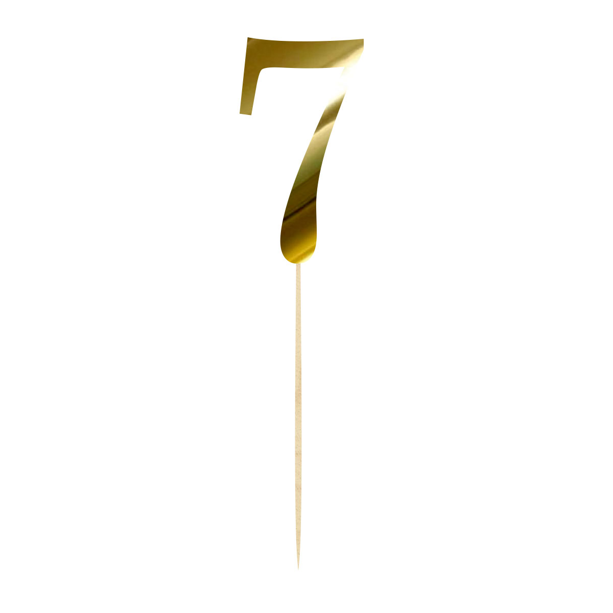 Topper cyfra na piku 7 dedykowany na urodziny, jubileusze, party. Dekoracja wykonana z lustrzanego złota podkreśli wyjątkowy charakter uroczystości i będzie doskonałym akcentem na torcie lub w bukiecie. Złota cyfra może służyć także jako nr stolika, dekoracja koszy prezentowych lub prezentów urodzinowych.